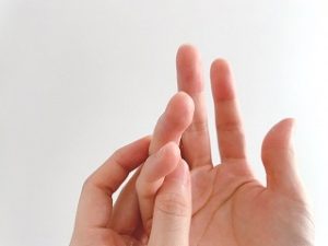 ひどくなると「ばね指(弾発指)」という、指がカクカクと引っかかって伸びない状態になることもあります。